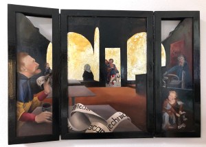 Colleen Wampole, False witness, oil on panel in custom hinged frame, dimensions variable, interior view, 2013