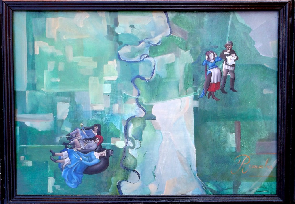 Conversation with Hokusai (detail), oil on canvas, 12 x 20″, 2011