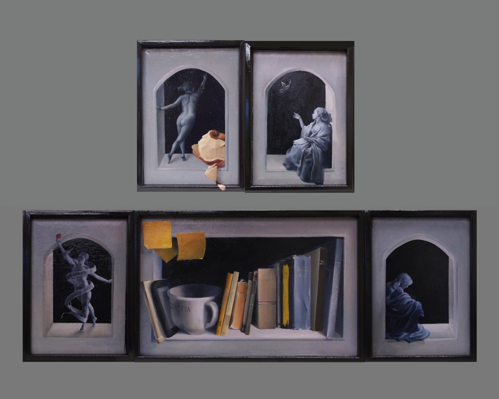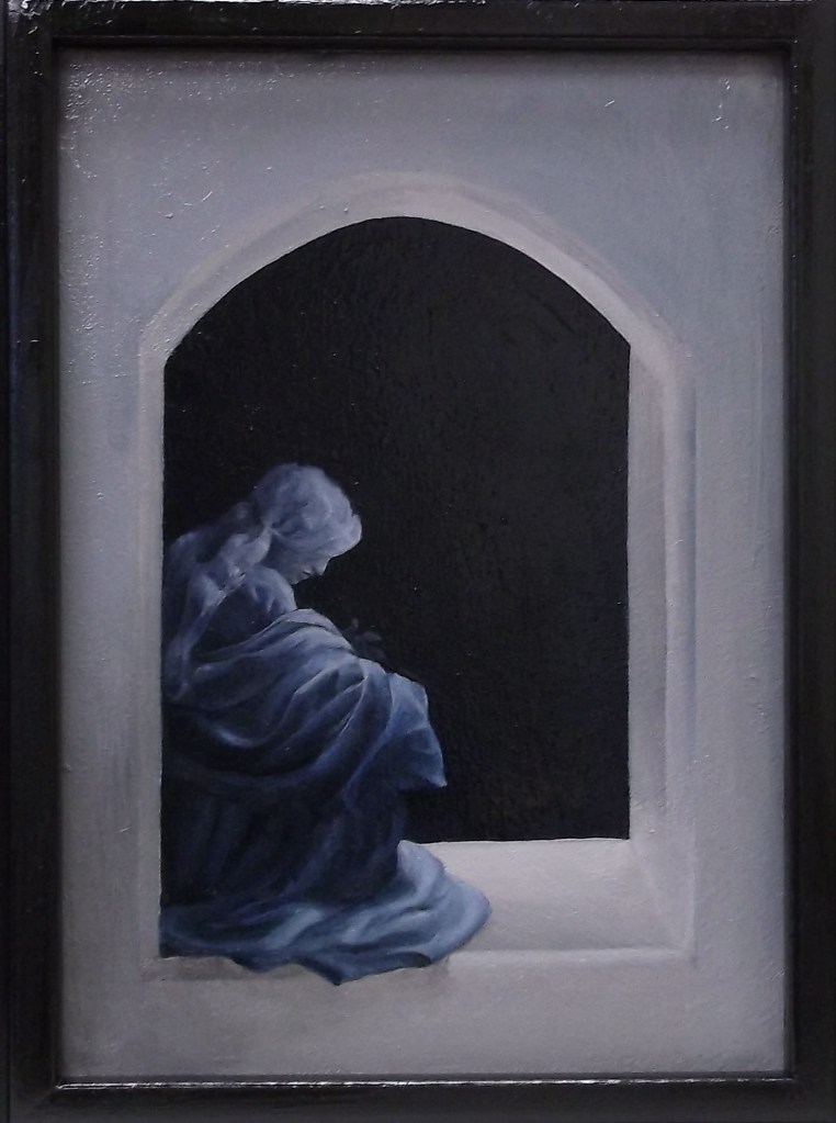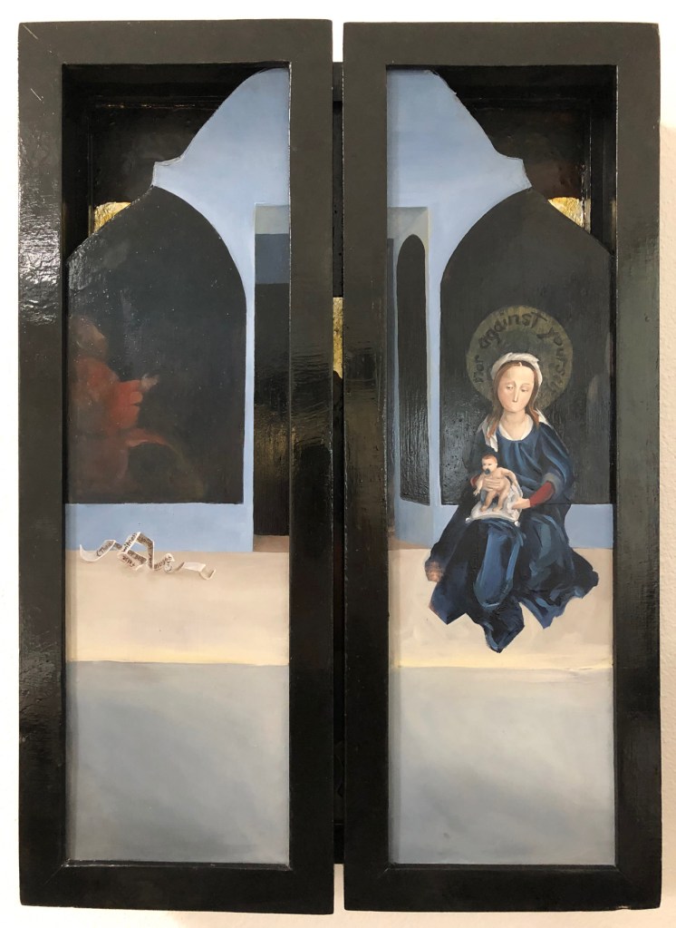 Hinged altarpieces (hiatus) Oil paintings in custom hinged frames depicting personal and postmodern visual inquiry into Biblical themes. Likely to resume after certain woodworking skills or tools are acquired