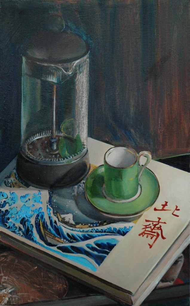Conversation with Hokusai, oil on canvas, 12 x 20″, 2011